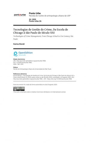 Tecnologias de Gestão do Crime, Da Escola de Chicago à São Paulo do Século XXI